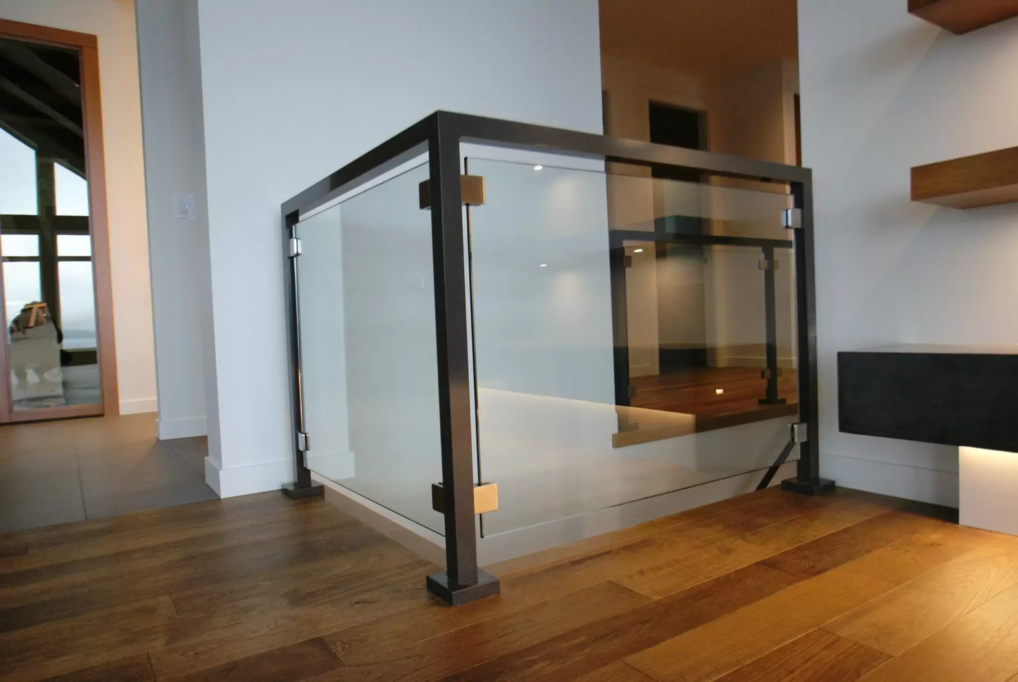 Sleek topless glass railings provide unobstructed views with modern safety; ideal for decks, balconies, and staircases.